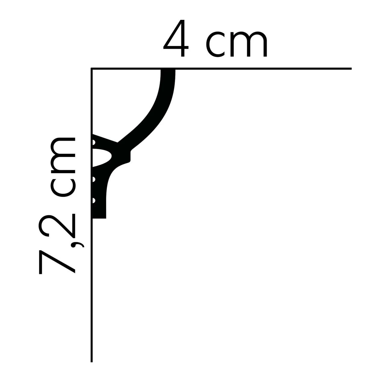 - GRÖSSE: Die Stuckleiste mit den Abmessungen 40 x 72 x 2000 mm schafft einen sauberen Übergang an der Wand oder Decke.