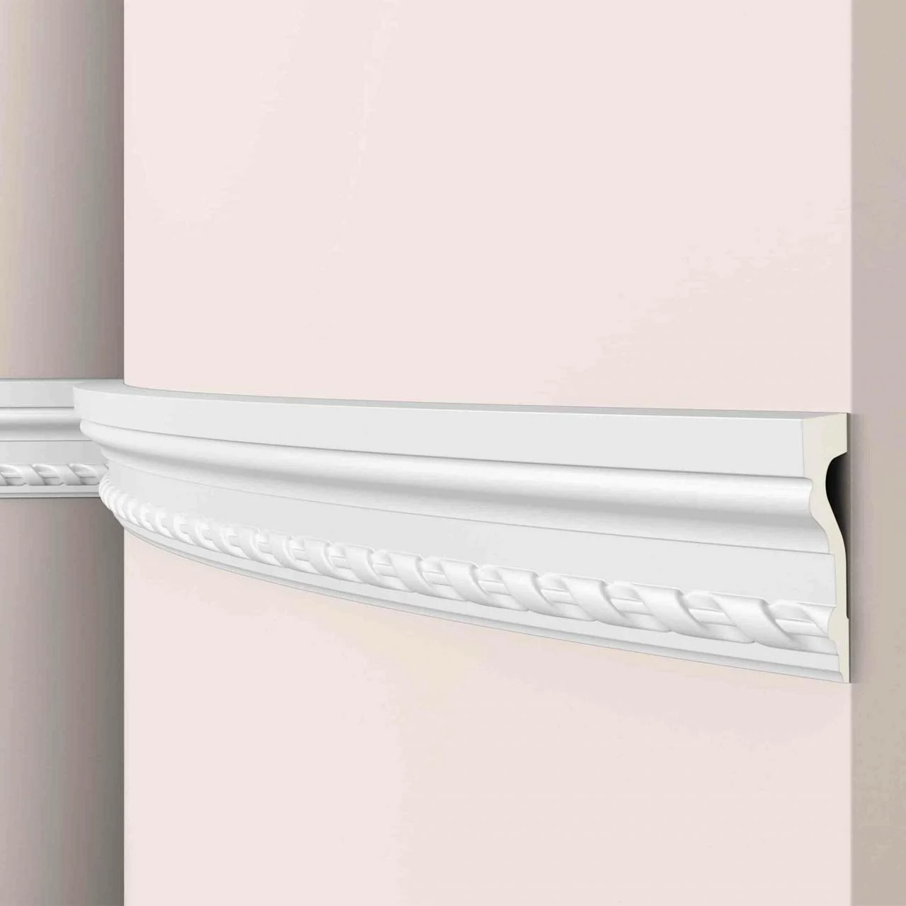 Zierleisten aus der Serie ARSTYL Flex sind aus flexiblem Polyurethan (PU) gefertigt, einem biegsamen, hochverdichteten Polyurethanschaum. Das Material hat eine Dichte von 200 kg/m³ und ist leicht zu verarbeiten. Die ARSTYL Flex Zierleisten zeichnen sich durch eine glatte und feste Oberfläche aus, die dank einer mattweißen Vorgrundierung Farbauftrag ohne zusätzliche Vorbehandlung ermöglicht. Dank des flexiblen Materials passen sich die Zierleisten problemlos allen Unebenheiten an.
