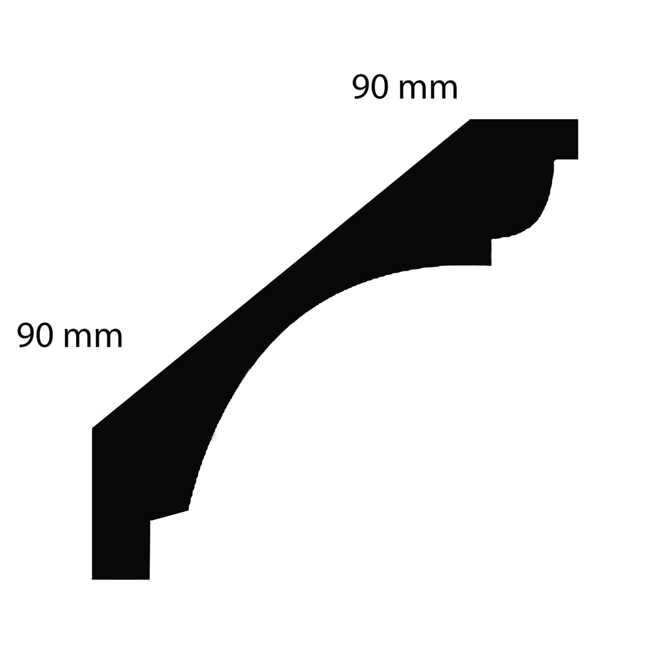 - GRÖSSE: Die Gipsleiste mit den Abmessungen 90 x 90 x 1200 mm schafft einen sauberen Übergang zwischen Decke und Wand.