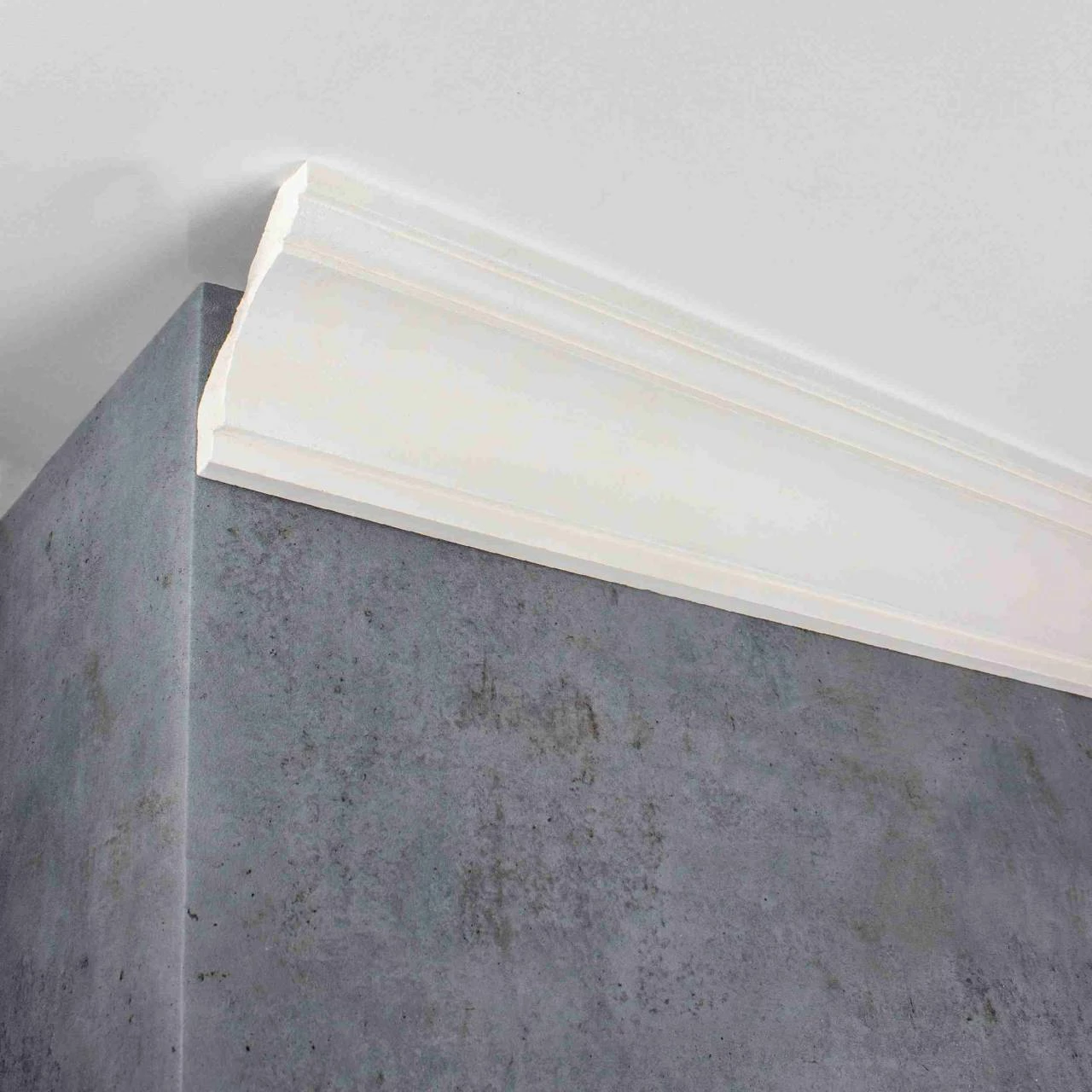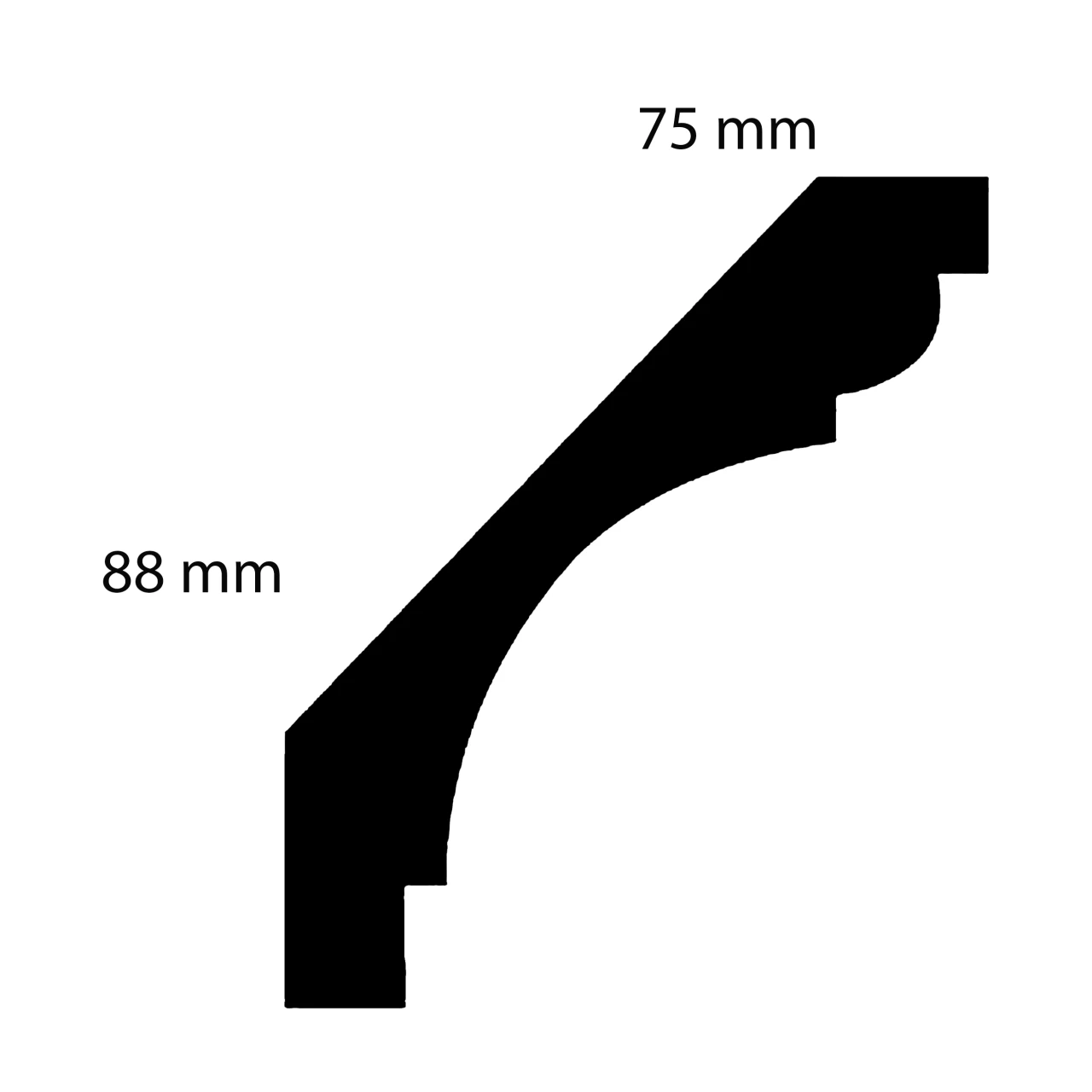 - GRÖSSE: Die Gipsleiste mit den Abmessungen 75 x 88 x 1200 mm schafft einen sauberen Übergang zwischen Decke und Wand.